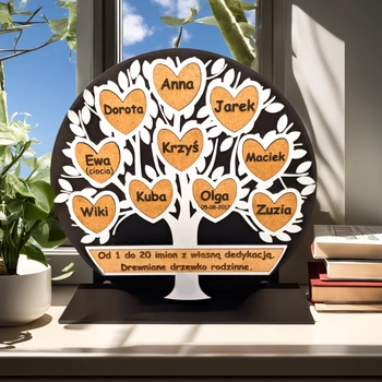 Drzewko w ramce - personalizowane z życzeniami, 1-20 serduszek. Biały/dąb