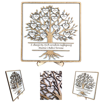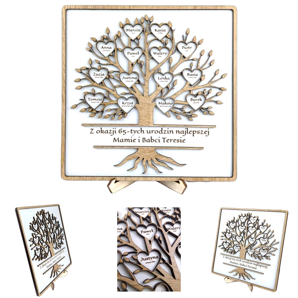 Drzewko w ramce - personalizowane z życzeniami, 1-20 serduszek. Biały/dąb