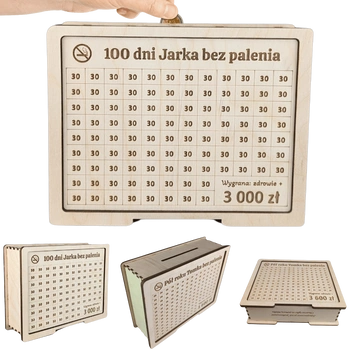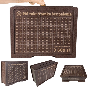 Skarbonka wykreślana "Rzuć palenie" - personalizowana, z twoim celem i kwotą. Wenge