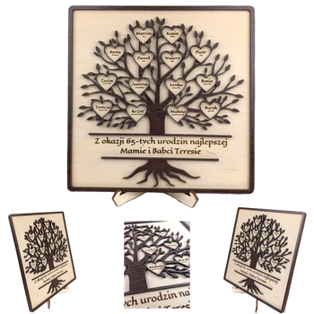Drzewko w ramce - personalizowane z życzeniami, 1-20 serduszek. Drewno/Wenge