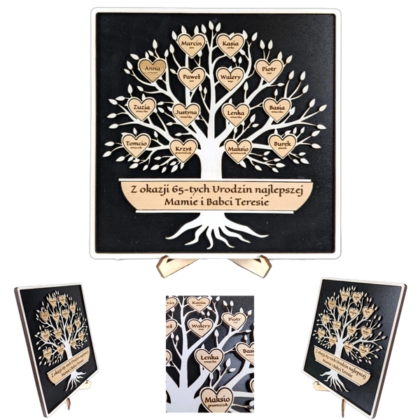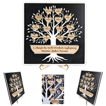Drzewko w ramce - personalizowane z życzeniami, 1-20 serduszek. Czarno/Białe