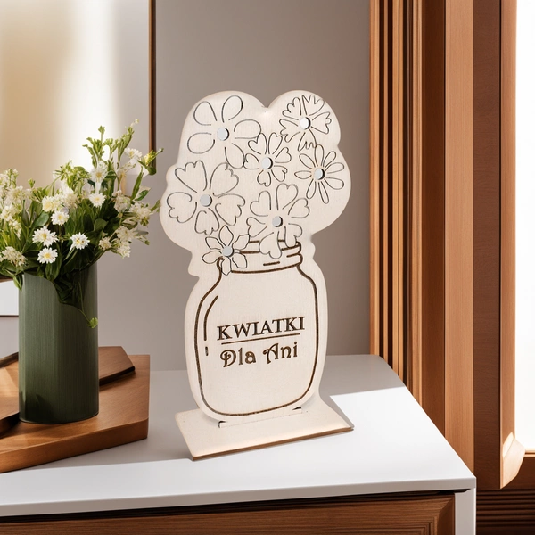 Drewniany bukiet kwiatów ciemnoróżowych z dedykacją