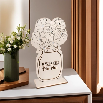 Drewniany bukiet kwiatów niebieskich z dedykacją