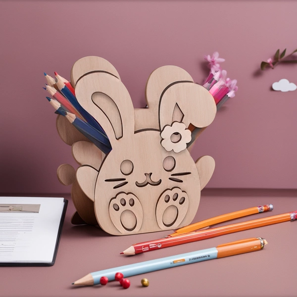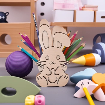 Drewniany organizer na kredki dla chłopca z dedykacją Królik