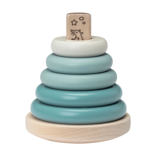 Drewniana układanka niebieska piramida zabawka nakładanka kółka nauka Micki