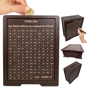 Skarbonka do wykreślania z szybką. Pełna personalizacja. Tracker