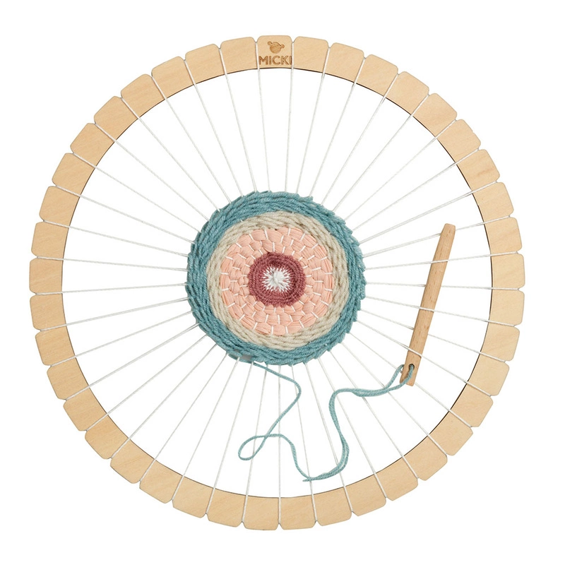 - Drewniane okrągłe krosno do tkania szwedzkiej marki Micki zachwyca i inspiruje do rękodzieła! Ten kreatywny zestaw zawiera: 4 kolorowe włóczki o różnych splotach o długości 35 m i 10 m osnowy. Dzięki poręcznemu rozmiarowi krosna Twoje dziecko może kontynu