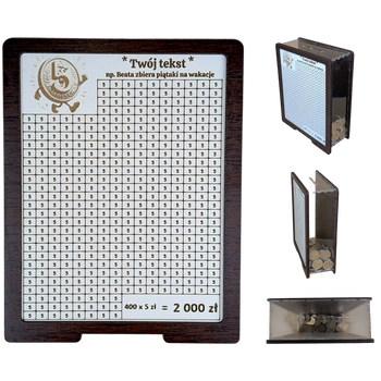Skarbonka do wykreślania z szybką. Pełna personalizacja. Tracker